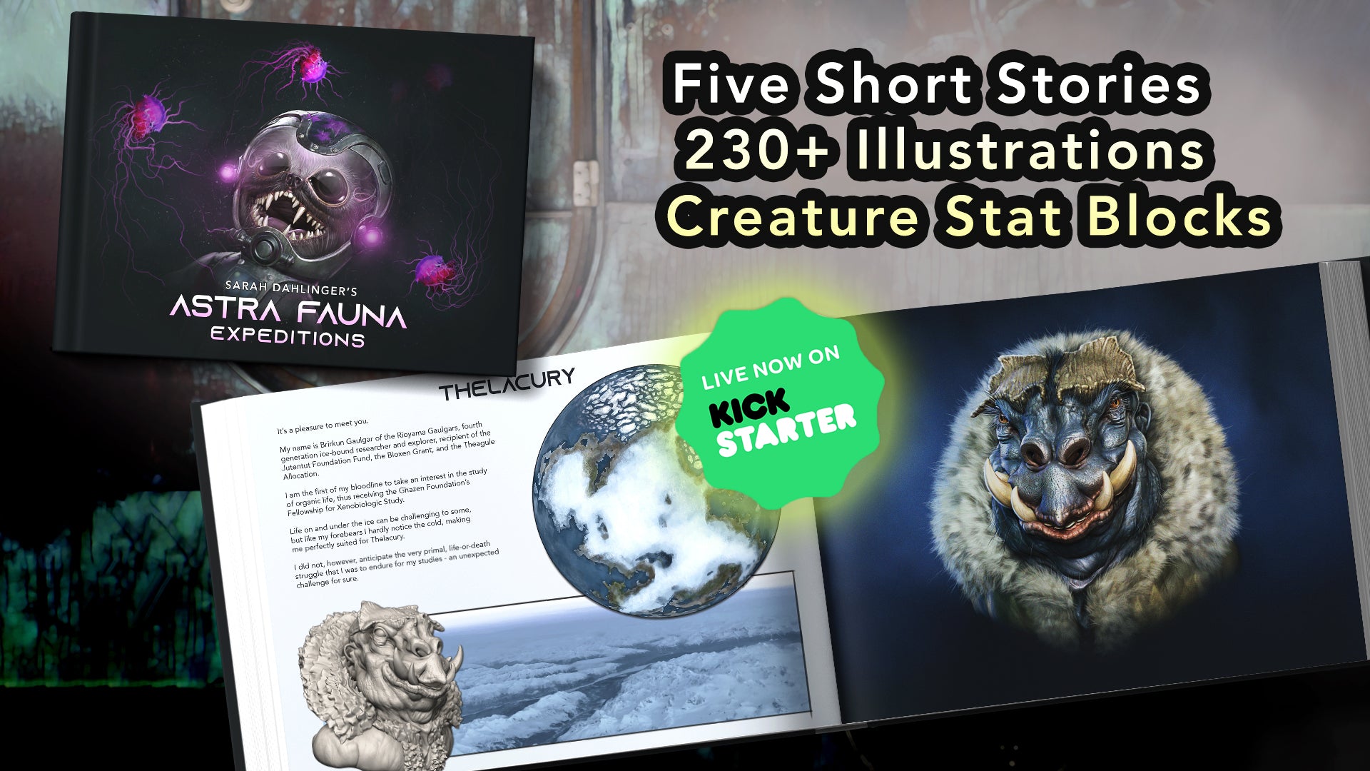 Explore a creature-filled universe alongside 5 alien scientists. 5 Short stories. 230+ illustrations. System neutral stats. No AI Art!